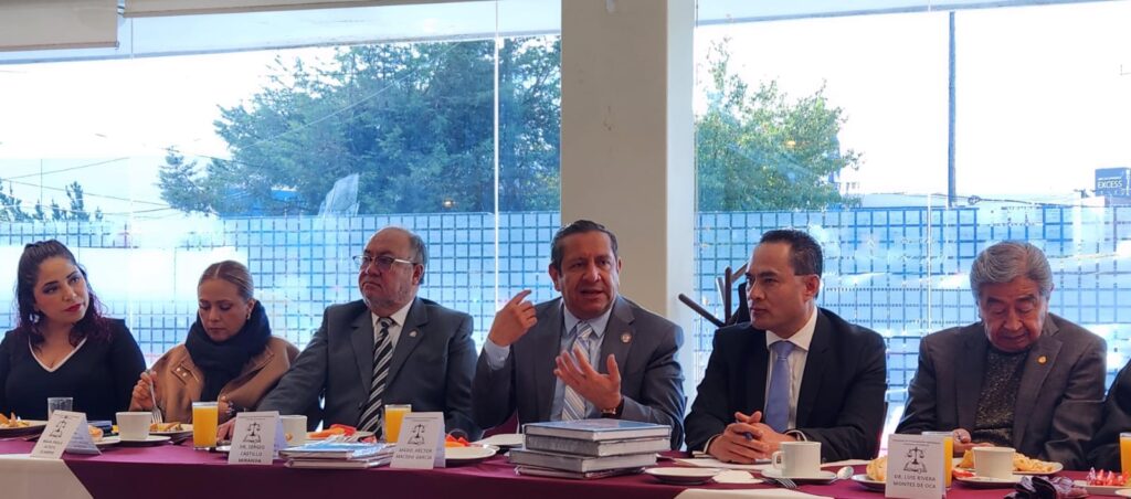 Durante la reunión, Agustín Flores Jaimes, doctor en Derecho e integrante de la Barra, destacó que la organización atraviesa un proceso de fortalecimiento y consolidación interna, enfocado en robustecer liderazgos, mejorar los mecanismos de comunicación y estrechar la relación con los tres poderes del Estado.