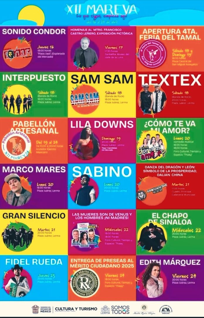 Del 16 al 24 de abril, Lerma se convierte en el epicentro cultural del Estado de México con el Festival MAREVA 2026, un evento que mezcla música, tradición y espectáculo de primer nivel.