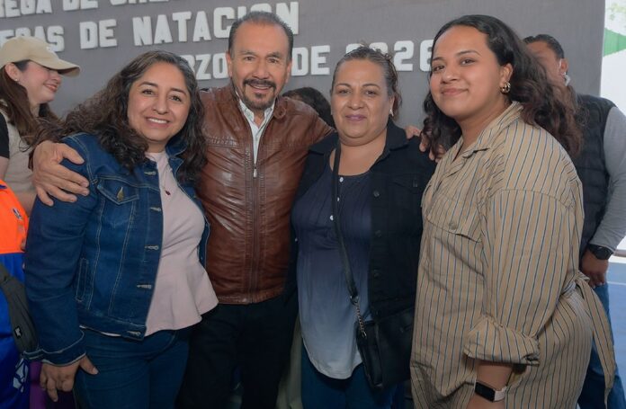 Atizapán de Zaragoza, EDOMÉX.– Como parte de una estrategia para promover la activación física y generar oportunidades de desarrollo, el Presidente Municipal, Pedro Rodríguez, encabezó la entrega de credenciales a 600 personas beneficiarias de becas que les permitirán integrarse a clases de natación en los espacios deportivos municipales.