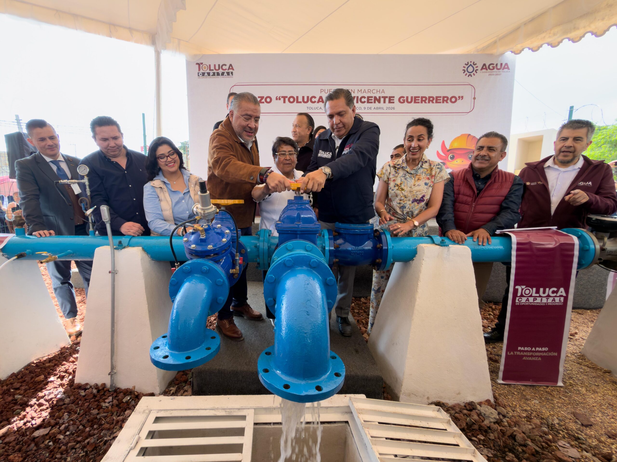 Toluca, EDOMÉX.- El Gobierno de Toluca dio un paso clave en su estrategia para garantizar el abasto de agua, con la puesta en operación del pozo profundo “Toluca VII”, también conocido como Vicente Guerrero, obra que fortalece la infraestructura hidráulica del municipio y reduce su dependencia de fuentes externas.