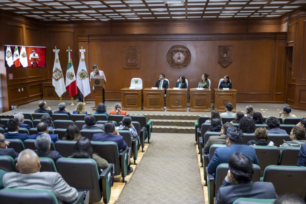 En la Sala “Benito Juárez” del Edificio de Rectoría, el académico José Guadalupe Gandarilla Salgado impartió la conferencia “El pensamiento latinoamericano, su tradición ante tiempos de agresión imperialista”, ante la comunidad universitaria y autoridades encabezadas por la rectora Martha Patricia Zarza Delgado.