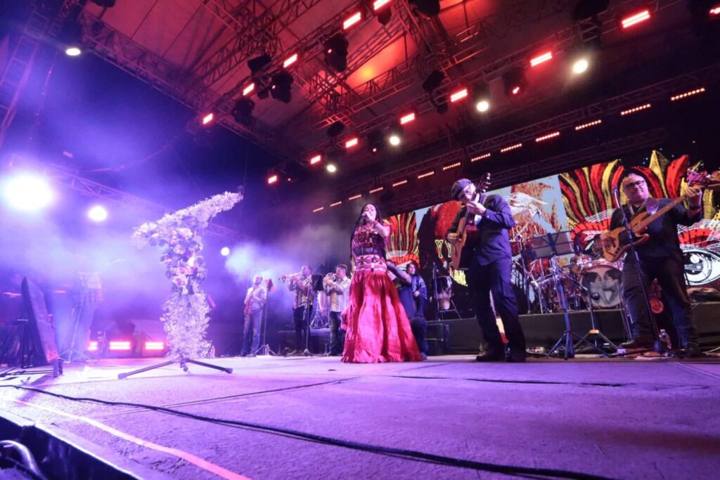 Con su inconfundible voz, cargada de raíz y memoria, llevó al público por un viaje que transitó entre lo sagrado y lo cotidiano. La Virgen de Juquila parecía observar en silencio, como testigo de una noche donde la cosmovisión indígena, el amor y la tradición se hicieron presentes en cada interpretación.