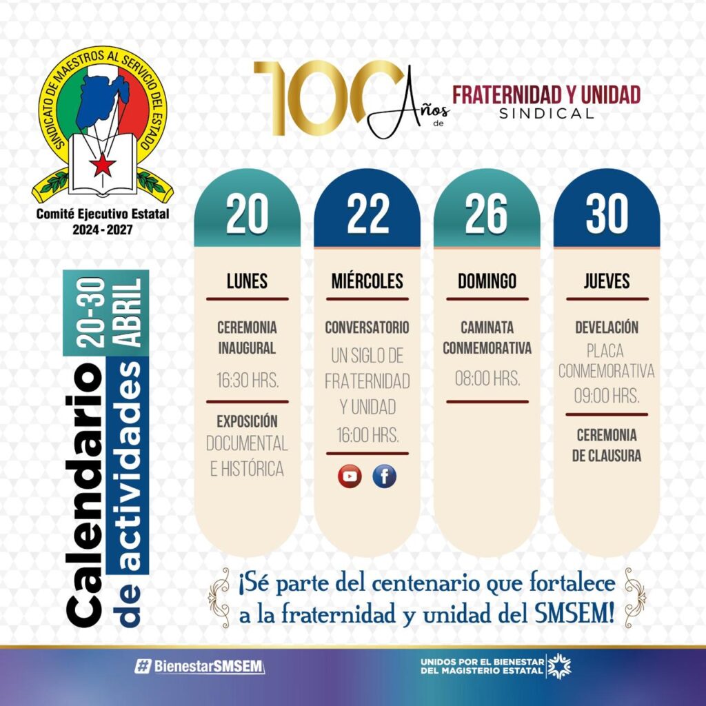 Martínez Reyes convocó a la base magisterial a sumarse a estas actividades y a reconocer el camino recorrido por el gremio docente a lo largo de un siglo de organización.