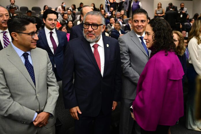 Horacio Duarte Olivares, Secretario General de Gobierno, quien asistió en representación de la Gobernadora Delfina Gómez Álvarez a la Sesión de declaración de Inicio del Proceso Electoral Judicial Extraordinario 2025 en el Instituto Electoral del Estado de México (IEEM), señaló que para la buena instrumentación de la elección se ha mantenido un diálogo permanente entre el ejecutivo, legislativo y judicial, así como con los órganos electorales.