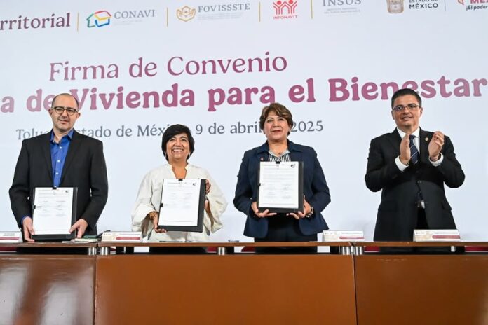 La Gobernadora del Estado de México, Delfina Gómez Álvarez y Edna Elena Vega Rangel, Titular de la Secretaría de Desarrollo Agrario, Territorial y Urbano (Sedatu), firmaron un convenio de colaboración para implementar el Programa de Vivienda para el Bienestar, a través del cual se construirán 71 mil viviendas en la entidad.