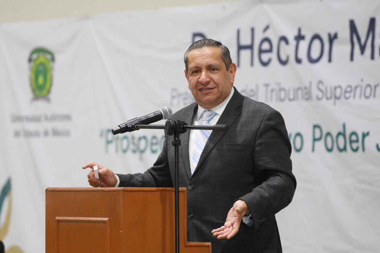 “Cada decisión judicial es un acto de responsabilidad de servicio, una oportunidad para proteger derechos, generar confianza para construir un Poder Judicial cercano a la ciudadanía”, expresó el Magistrado Héctor Macedo García, Presidente del Tribunal Superior de Justicia, al dictar la Conferencia Magistral “Prospectiva del nuevo Poder Judicial del Estado de México” en el Centro Universitario UAEM Amecameca.